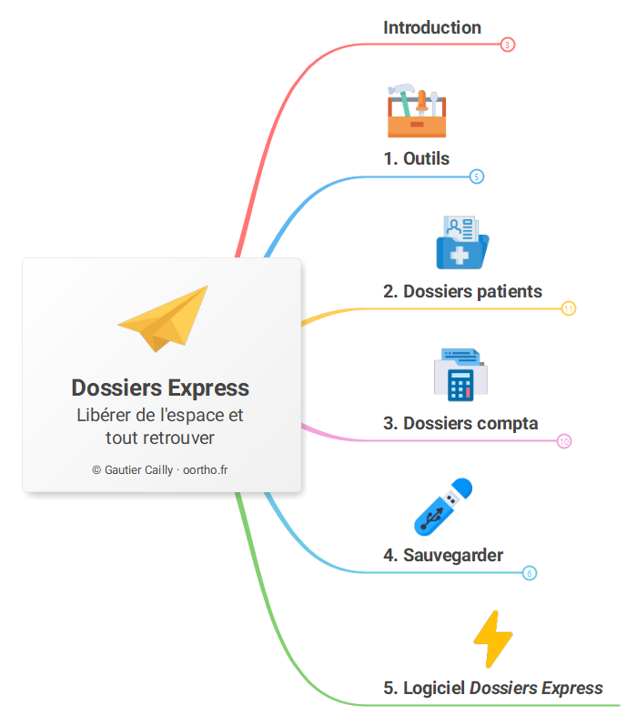 Alors année après année, j’ai élaboré un système informatique simple et fiable autour des deux grands types de dossiers : les dossiers patients et les dossiers compta. J’ai éprouvé une organisation simple, je me suis équipé avec un matériel pratique, j’ai normalisé la façon de nommer mes fichiers pour mieux les retrouver.
