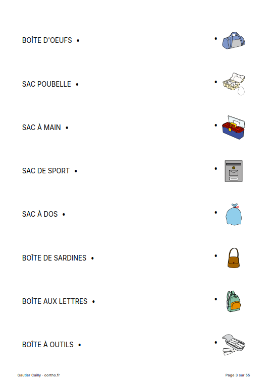 Un cahier de 50 pages autour de la polysémie. Le patient doit associer chaque mot à ses différentes mages/significations.